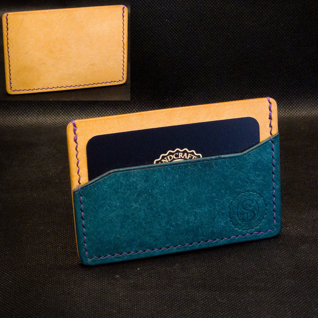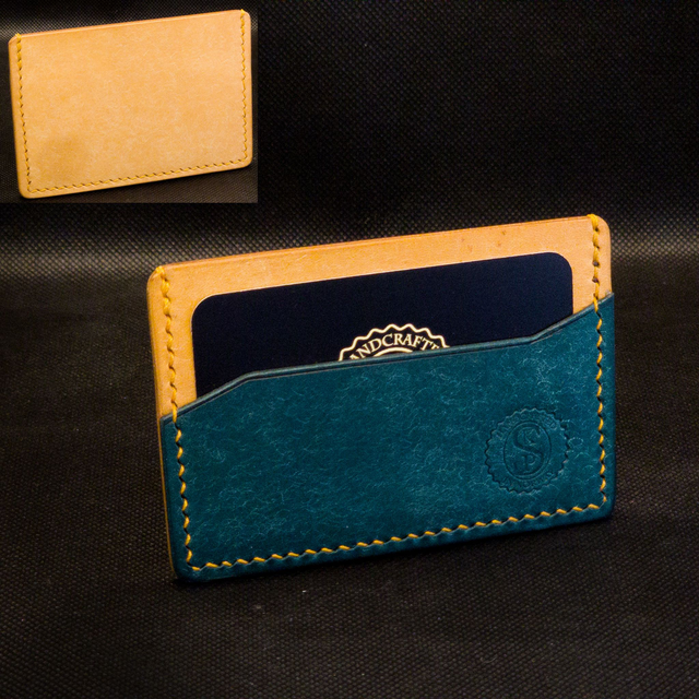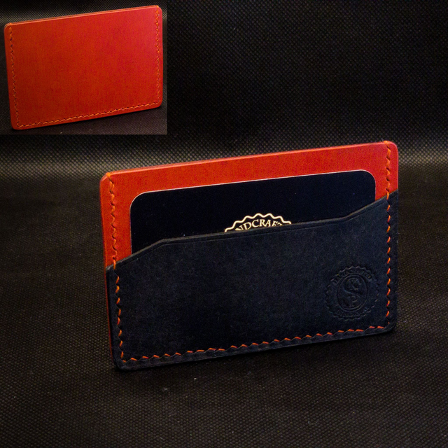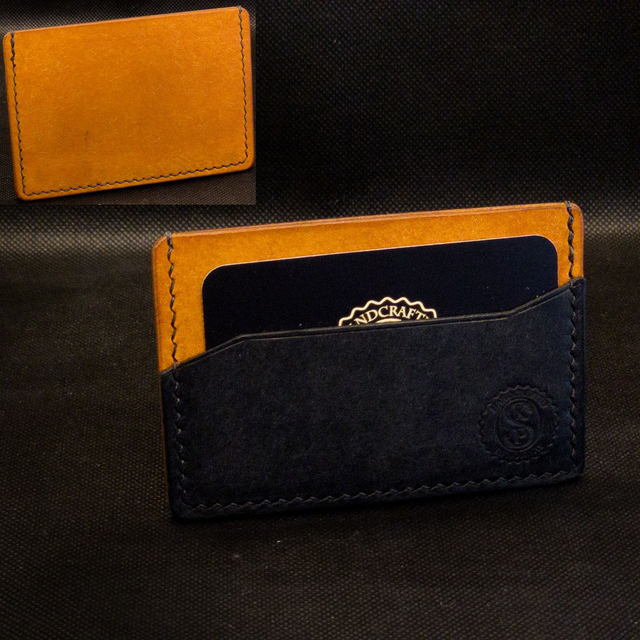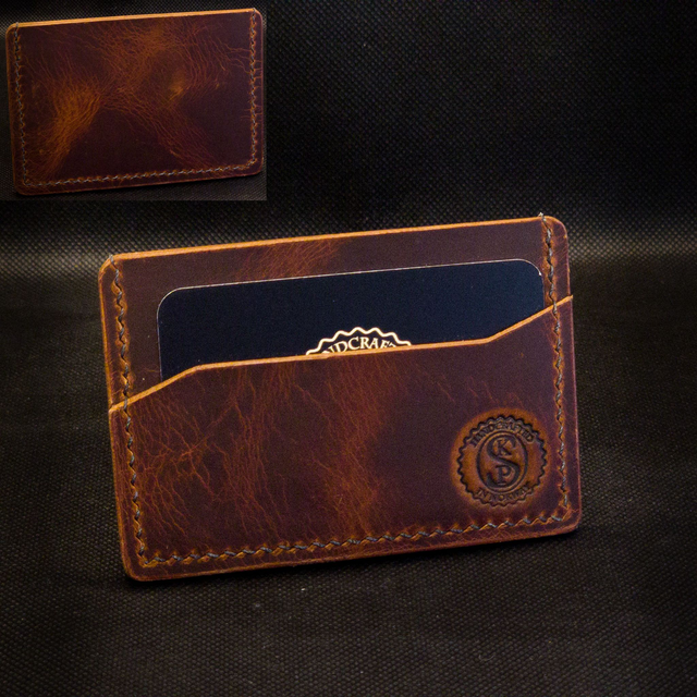 Denne minimalistiske kortholderen i fullnarvet lær har to lommer og plass til opptil fire kort fra start. Etter hvert som læret strekker seg, vil den tilpasse seg og gi plass til flere.